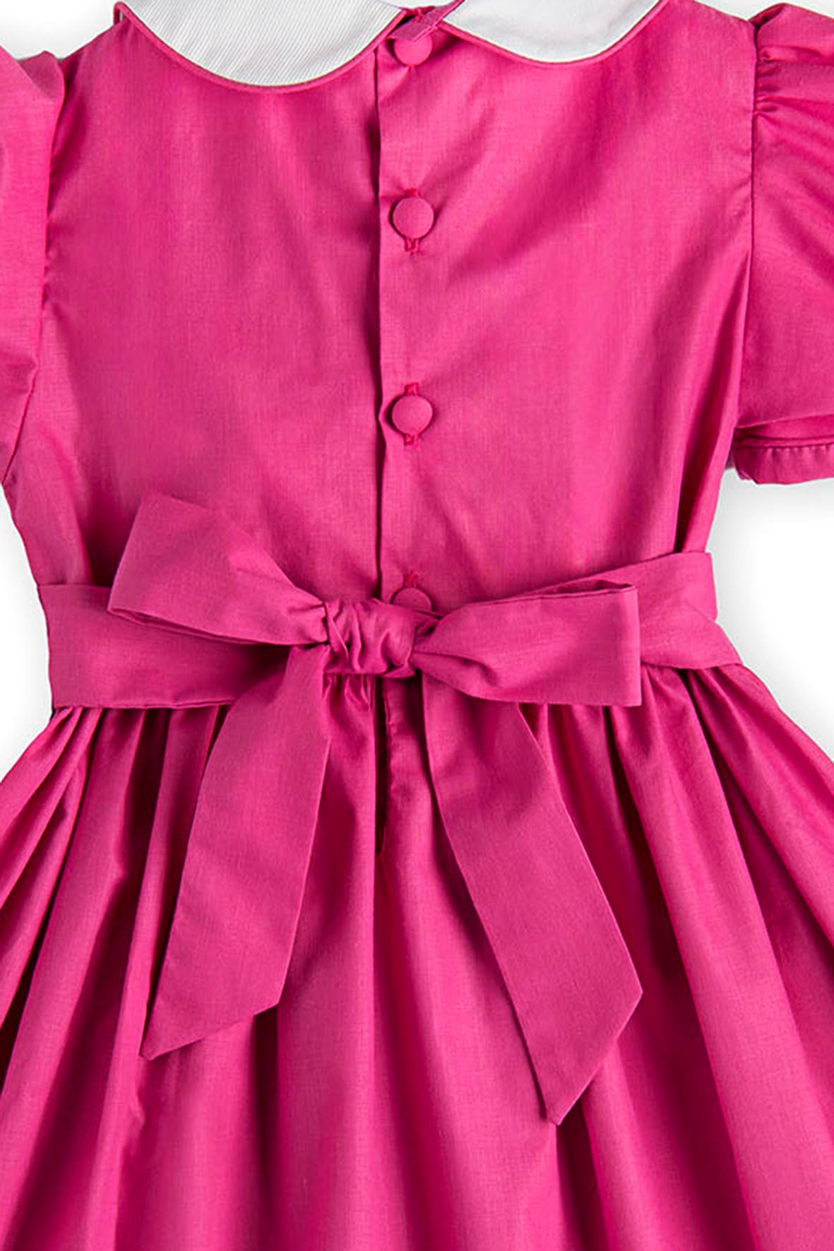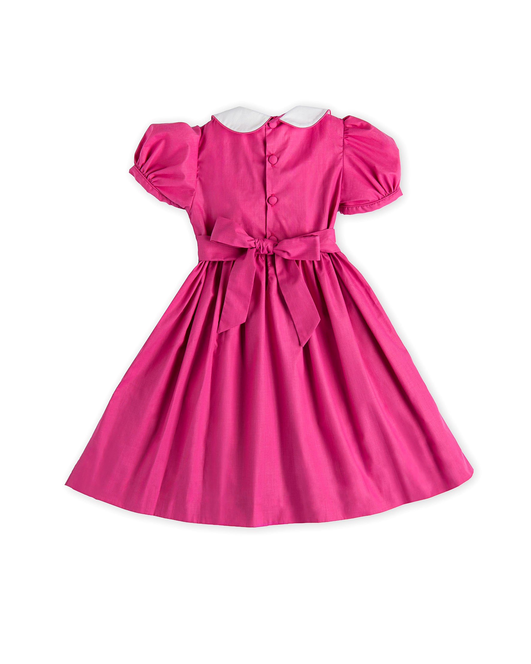 ليلى هي قطعة خالدة مليئة بالسحر والأناقة. مصممة من قطن ناعم وقابل للتنفس باللون الفوشيا الزاهي، تتميز ليلى بتفاصيل مشغولة يدويًا عبر الجزء العلوي مزينة بتطريز زهري دقيق لإضافة لمسة من التراث الجميل. كما أن الياقة البيضاء على شكل بانتر بان والكم القصير المنفوخ يضفيان لمسة من الرقي الكلاسيكي، بينما يتيح التنورة الواسعة والمجمعة حركة مرنة ودوران سعيد. تم تصميمها بعناية لتوفير الراحة والجمال معًا، مما يجعل ليلى مثالية للاحتفالات الخاصة، والتجمعات العائلية، ولحظات تستحق الذكر.