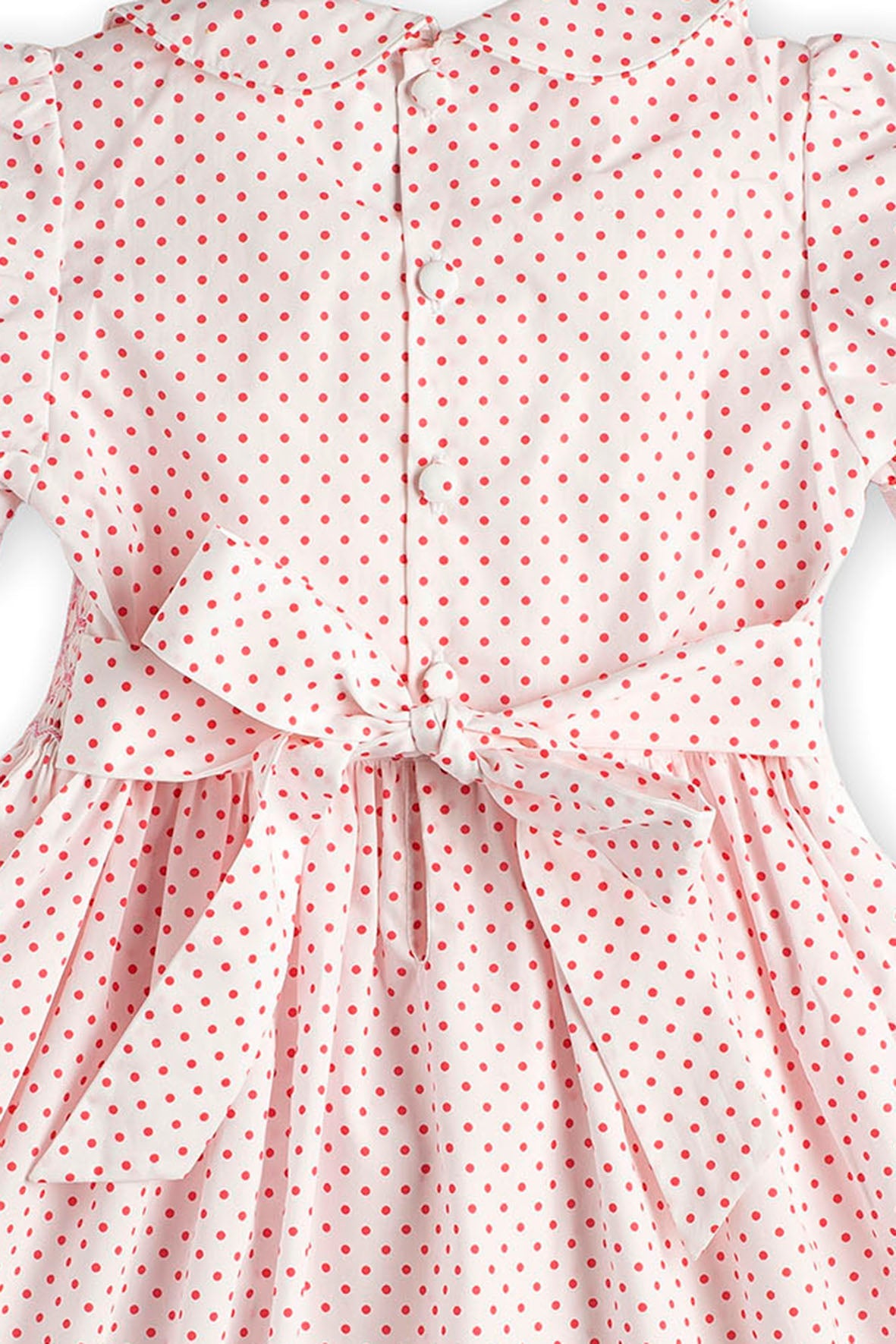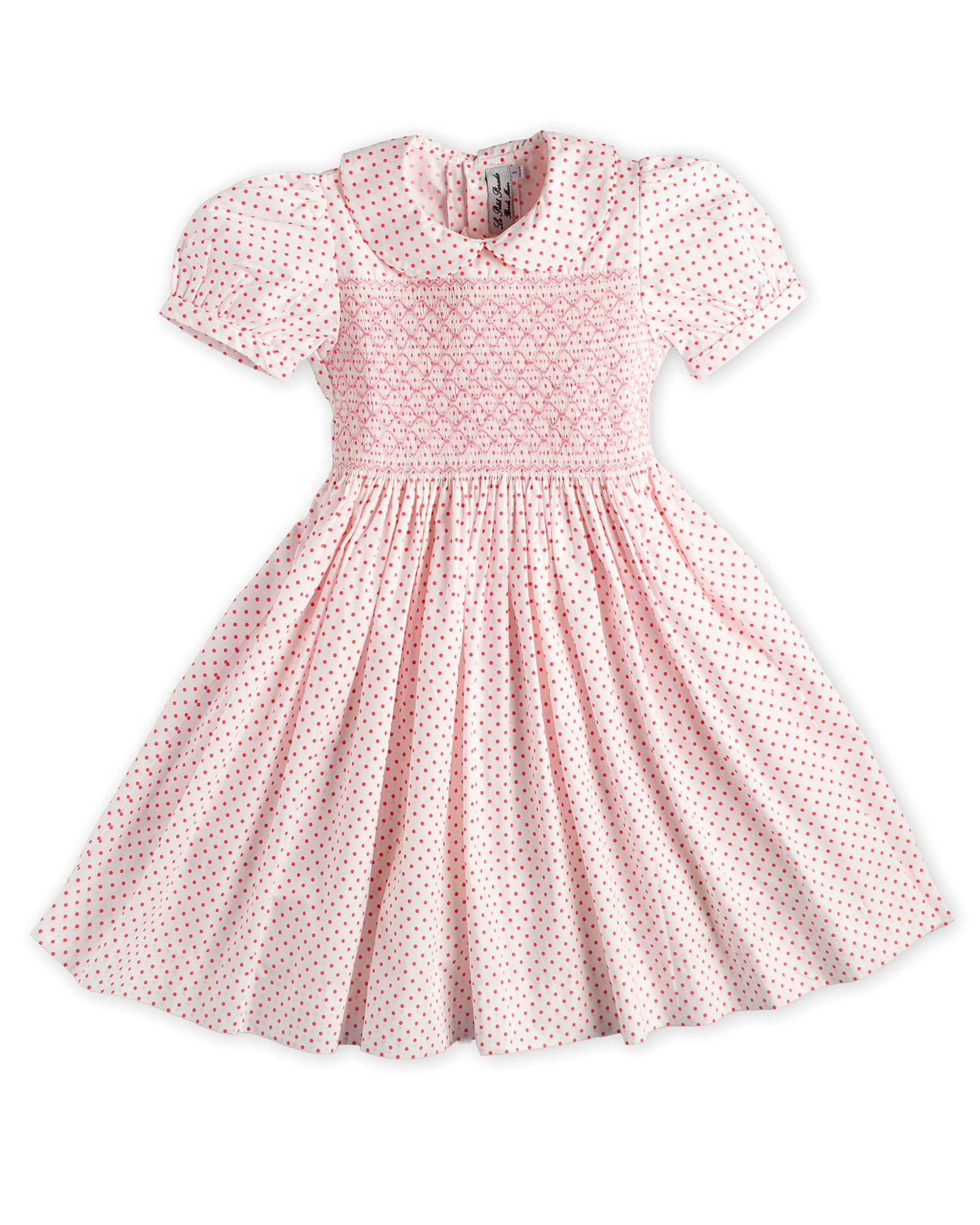 فيوليتا فستانٌ مصنوعٌ يدويًا من القطن الأبيض الناعم، مزينٌ بنقاط حمراء صغيرة. تطريزٌ يدويٌّ رقيقٌ على الجهة الأمامية بألوانٍ متناسقة. بأكمامه المنفوخة وتنورته المنسدلة، يُضفي عليه مظهرًا أنيقًا خالدًا. فستانٌ خفيفٌ وساحر، مثاليٌّ للأيام المشمسة واللحظات الخاصة.
